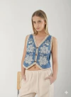 Chaleco de jean bordado en crochet