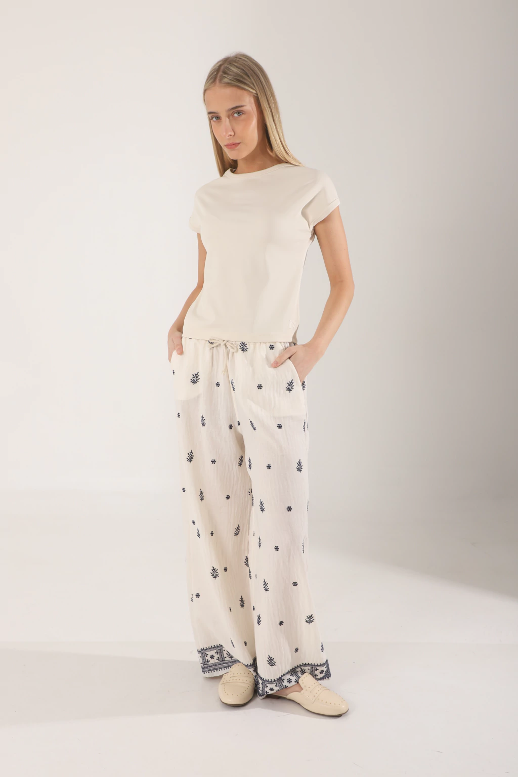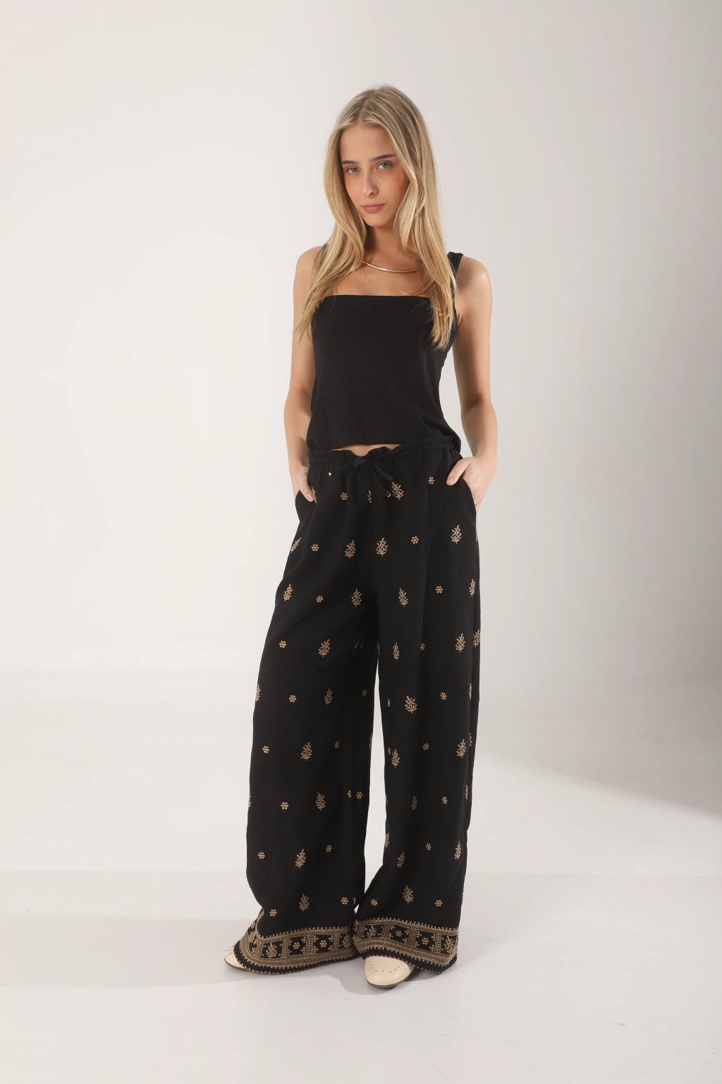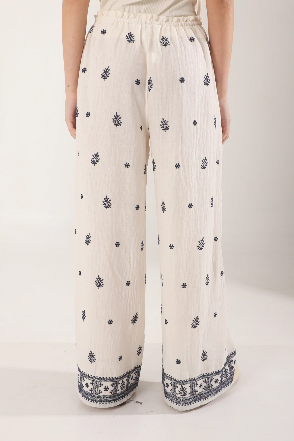 Pantalón Candelaria Descubrí el Pantalón Candelaria, diseñado para ofrecer un ajuste perfecto y comodidad gracias a su elástico en la cintura. Disponible en talles M, L y XL, sus medidas son: - Talle M: Cintura 38 cm, Largo 101 cm - Talle L: Cintura 40 cm, Largo 102 cm - Talle XL: Cintura 42 cm, Largo 102 cm