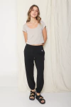 - PANTALÓN BABUCHA CON ELÁSTICO EN CINTURA, PUÑOS CON ELÁSTICO, BOLSILLOS LATERALES Y CORDÓN DE ALGODÓN CPN PUNTERA A TONO