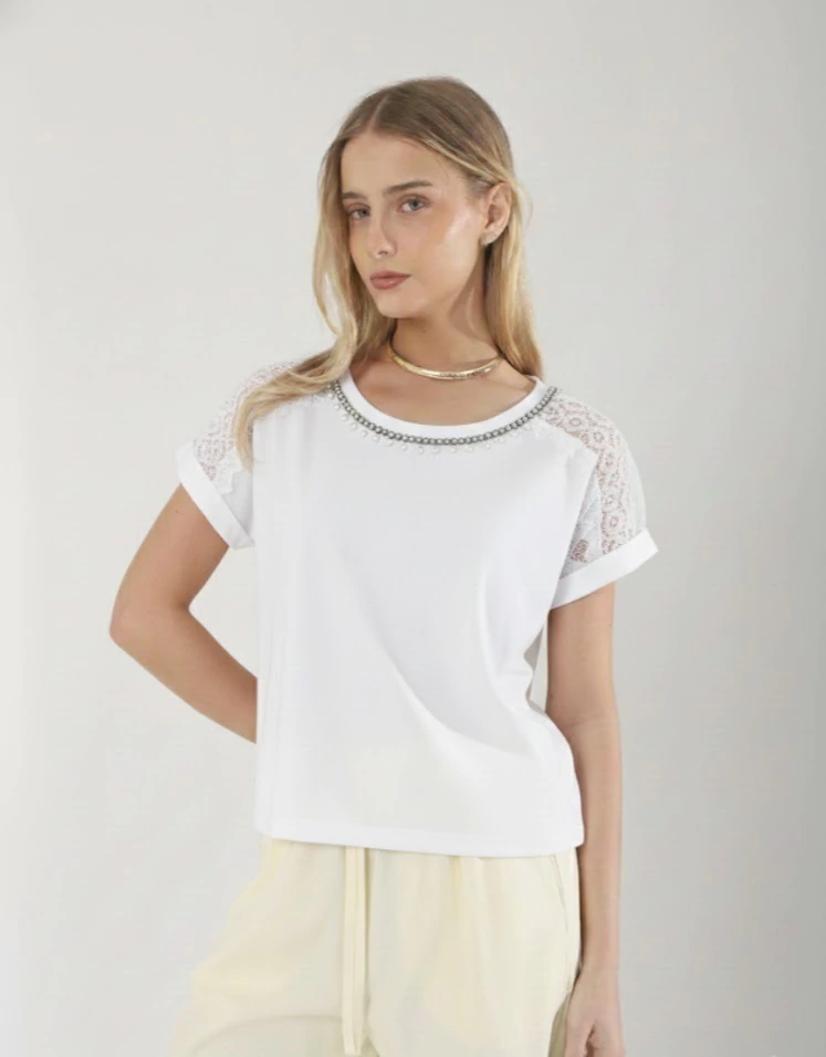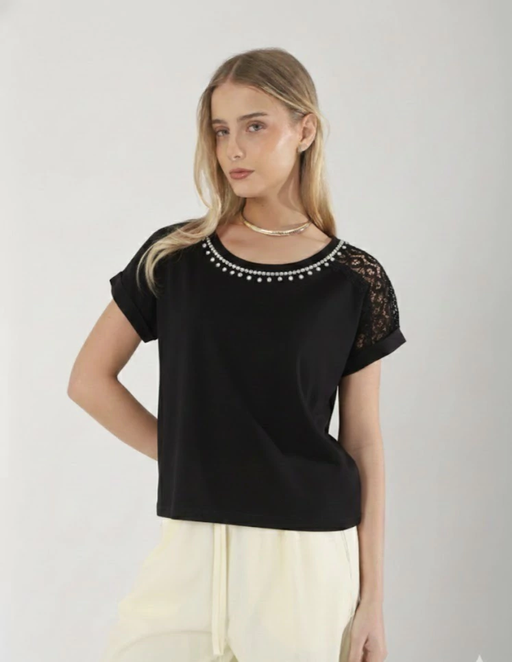 Remera importada de algodon y lycra, blanca y negra