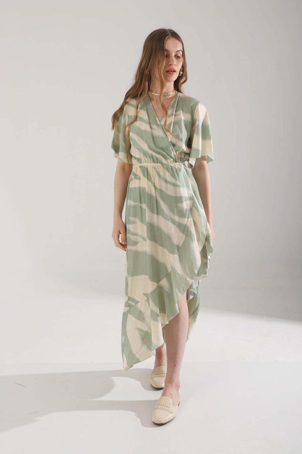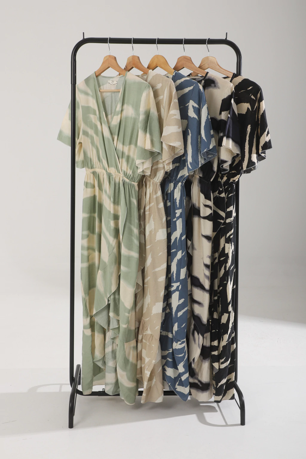 VESTIDO LARGO CRUZADO CON VOLADOS